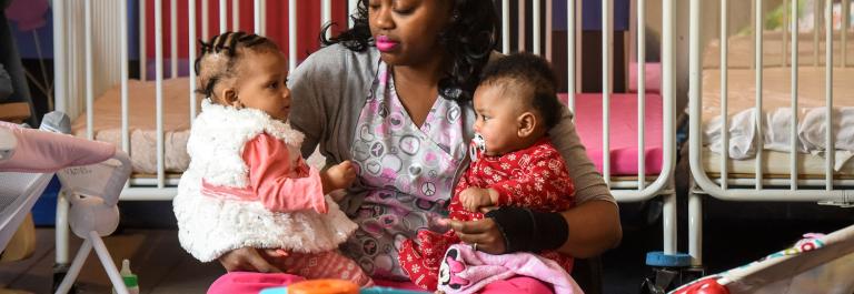 <p>Kiwanna Brunson with two of the babies in her care at Hart Christian Tabernacle Child Development Center, on December, 13, 2016 in Washington, DC.<br />