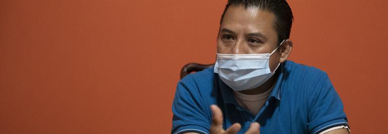 <p>Axayacatl Figueroa, who recovered after suffering from COVID-19, gives an interview in his apartment in Brooklyn, New York, Monday, July 6, 2020. Figueroa, who emigrated to New York in 2005 from Mexico's San Jerónimo Xayacatlán, leaving behind his wife and son, recovered after three weeks, but lost his full-time job in the kitchen of a Vietnamese restaurant and returned part-time. Before COVID-19, he sent up to $400 home every month. (AP Photo/Mark Lennihan)</p>