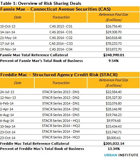 Freddie Mac’s first risk sharing Structured Agency Credit Risk (STACR) deal in July 2013 was followed by Fannie’s first deal -- Connecticut Avenue Securities (CAS) -- in October, 2013. While these early deals focused primarily on loans with very low loan-to-value (LTV) ratios, these deals have also included mortgages with LTVs over 80 percent since May 2014.