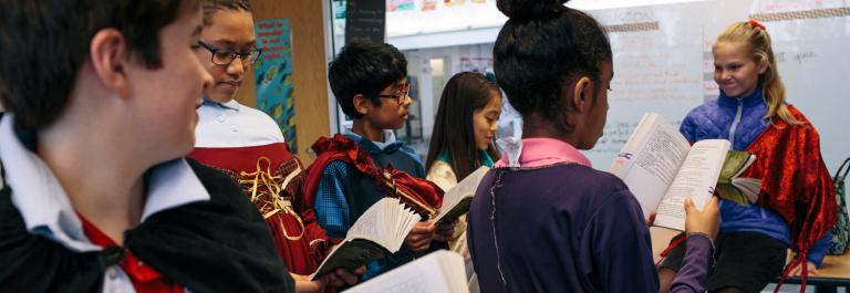 <p>Students in sixth grade language arts class read and act out Shakerspear's A Midsummer Night's Dream at Nysmith School for the Gifted in Herndon, Va. Photo by Lexey Swall/GRAIN for The Washington Post via Getty Images.</p>