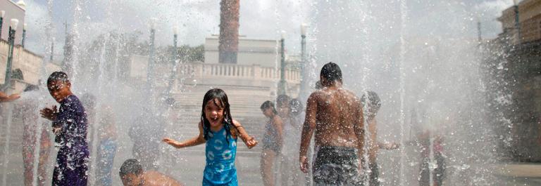 Children cool off at a water fountain during the Summer Solstice in Old San Juan, Puerto Rico, Friday, June 21, 2013. Photo by Ricardo Arduengo/AP