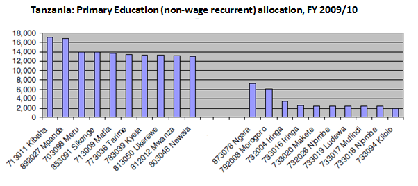 4. In order to be equitable, the public sector has to distribute resources fairly across the national territory. Donors also need to target the territorial allocation of services. Government resources and development assistance should be spent where needs are greatest. The graph below illustrates a common situation in many countries: some local jurisdictions receive much greater allocations per person or per capita than other places—often up to 5–10 times more. While an equitable allocation of resources would mean the local jurisdictions with greater needs would receive more resources, the opposite is often true: often the politically well-connected places receive the greater per person allocations, while poor, rural communities are left to fend for themselves.