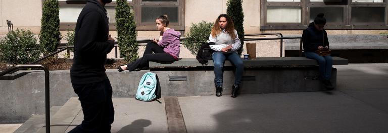 <p>People mill about on the campus of Hunter College of The City University of New York, on April 10, 2017 in New York City. Photo by Drew Angerer/Getty Images.</p>